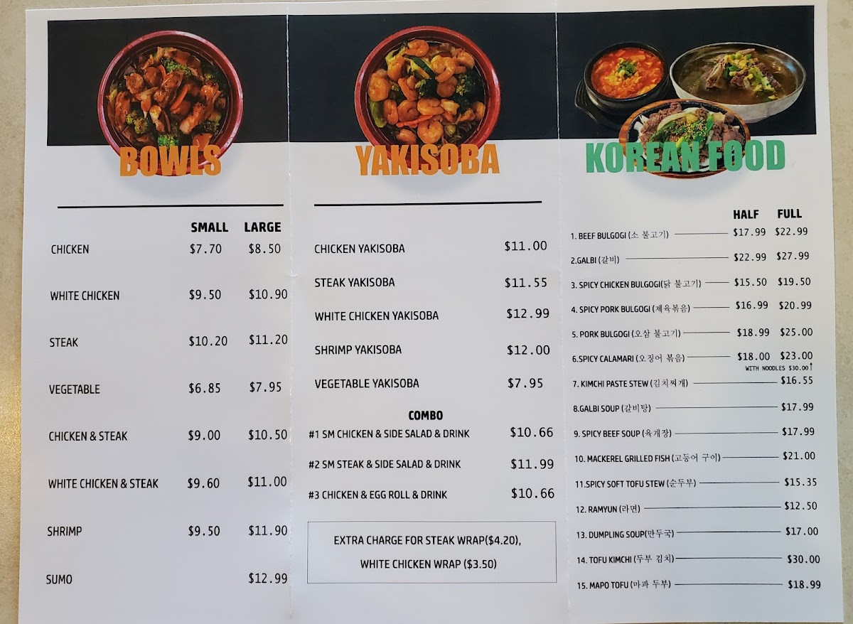 At Sam's Korean BBQ, the menu boasts an array of tasty options, including their popular Teriyaki Wraps and Famous Bowls. The Teriyaki Bowls are a must-try, crafted to order and served on a fluffy bed of rice accompanied by crisp, wok-stirred veggies drizzled with Sam’s famous teriyaki sauce. Customers rave about the chicken and steak bowls, praising their mouthwatering flavors and generous portion sizes. For a unique twist, the Yaki Soba Bowls feature tender yaki soba noodles tossed with an assortment of fresh vegetables that complement the protein options beautifully. Don't forget to sample their Grilled Egg Rolls and Crab Puffs, which are perfectly grilled for that extra crunch, providing the ideal sidekick to your main meal.
